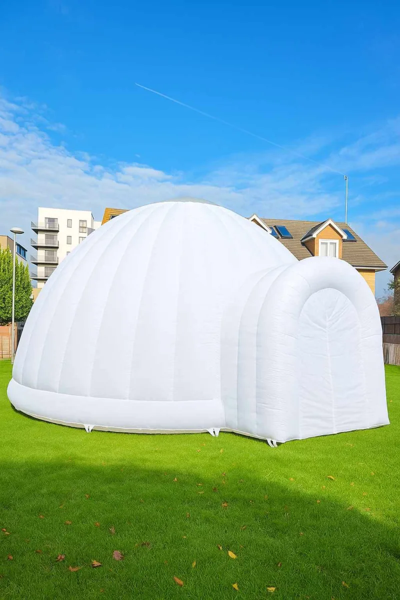 Create a truly unforgettable atmosphere with our luxurious 28x26ft white inflatable igloo - a stunning, versatile space that transforms any event into a glowing, contemporary experience.